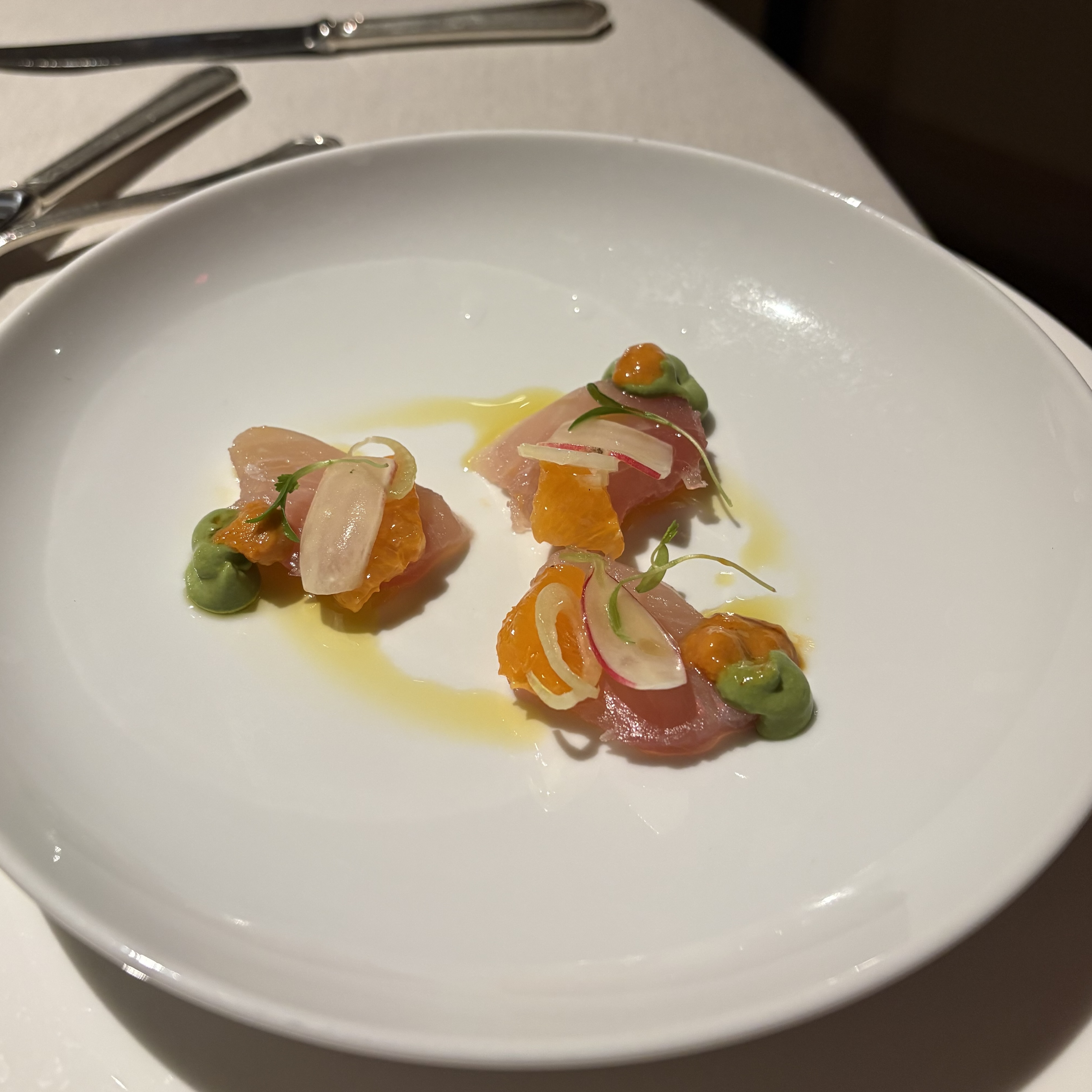 - ★☆☆☆ california albacore crudo -- mandarin, avocado, santa barbara uni. Pretty meh, not the best crudo texture