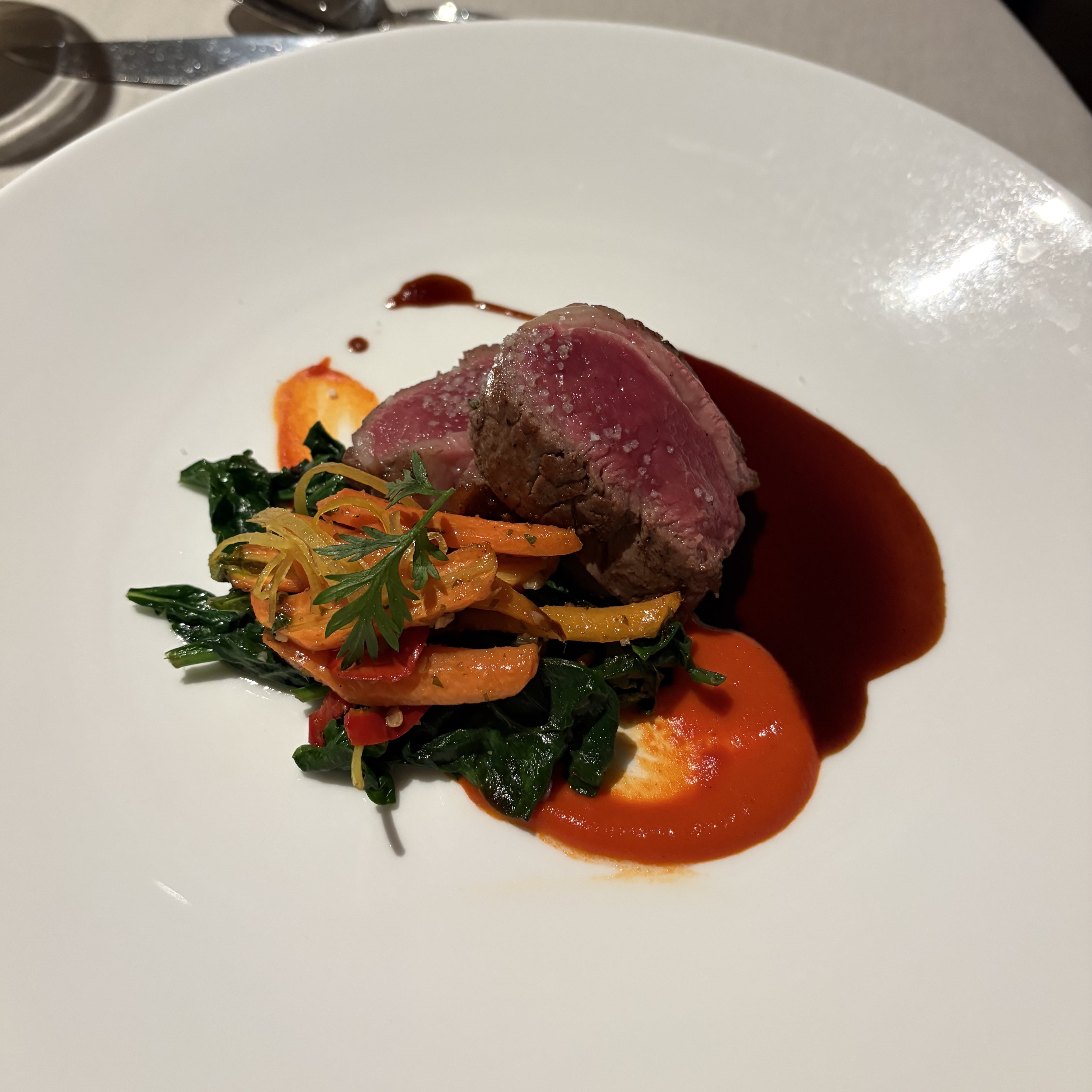 - ★★☆☆ roasted local lamb -- moroccan spiced carrots, jimmy nardellos, picholine olives, lemon confit. Excellent flavor combination. The flavor on the lamb is awesome. The lamb is a bit too rare and sometimes tough with the silver skin for me
