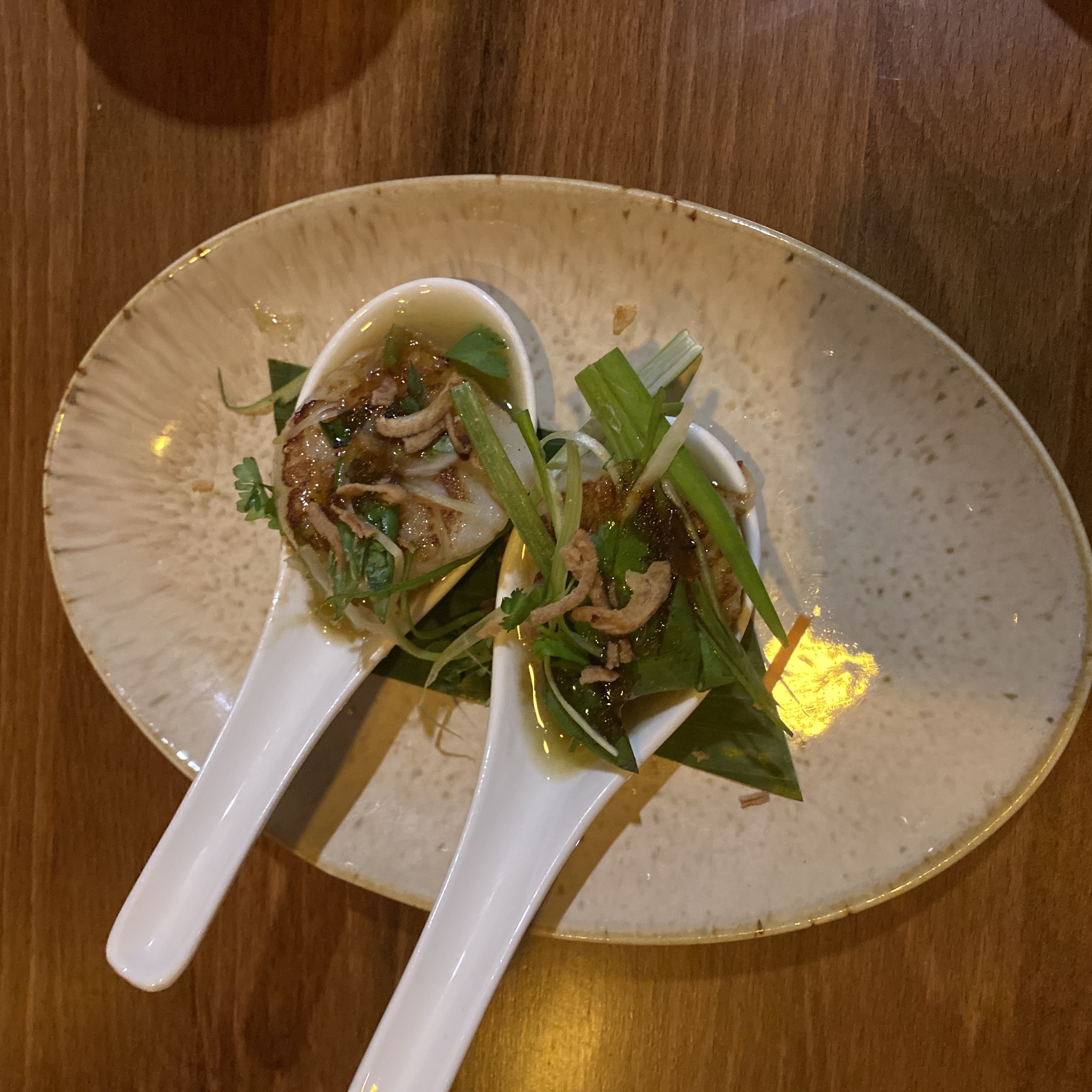 - ★★★☆ Seared Alaska Scallop -- With green nahm jim, ginger, scallion, shallot, and caramelized crispy duck. The flavors were amazing and well balanced - loved the interplay between the sweet, sour, salty, and freshness. It's only $4 each, so would definitely recommend trying it out. The scallops are fairly large as well. The description was a bit misleading as it certainly wasn't seared though.