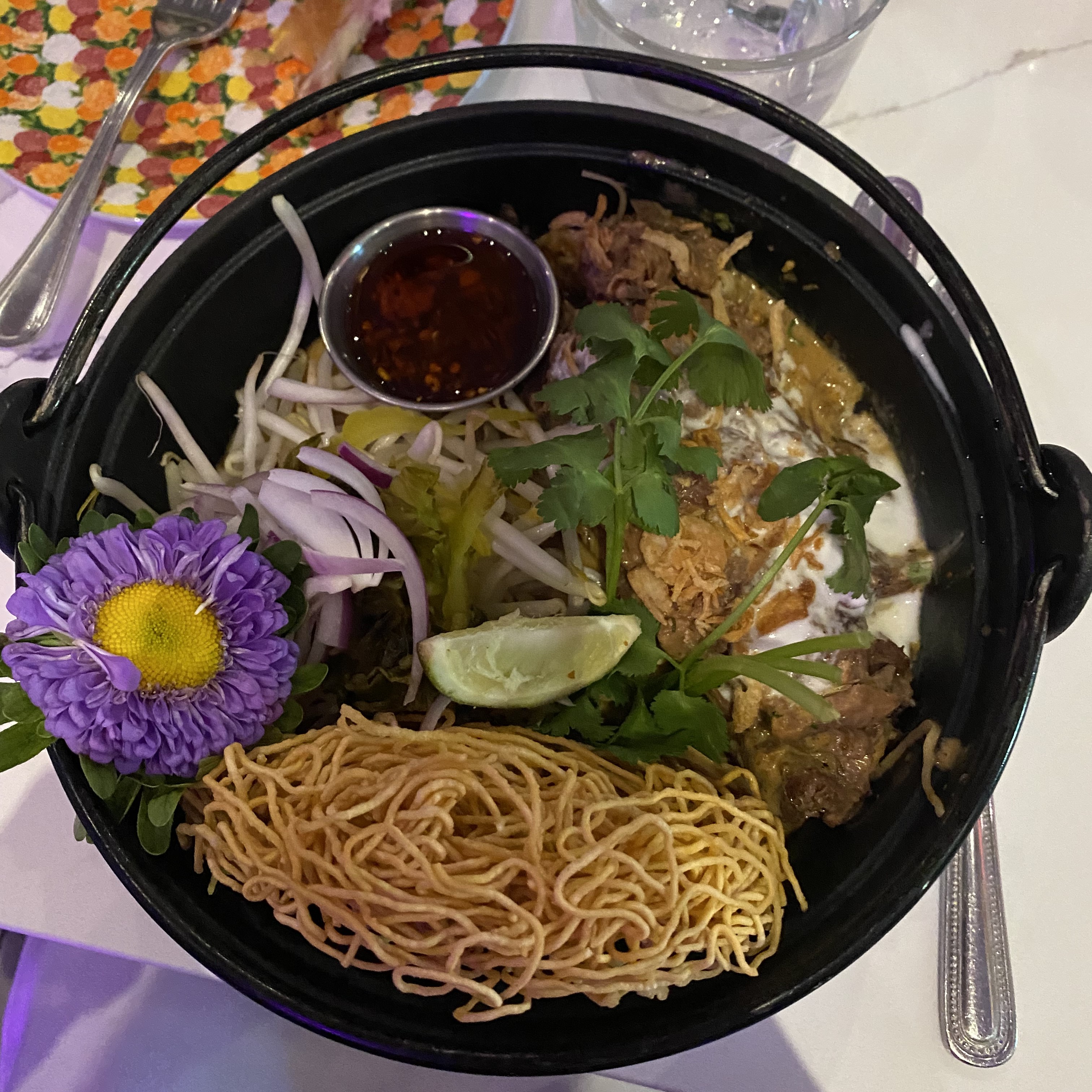 The best way I would describe this restaurant is "instagram-friendly". They definitely put a lot of emphasis on the aesthetics. In fact, there's a flower wall in one corner of the room that has the text "Hello Gorgeous", with a ring light in front of it! That being said, their food is decent but probably not worth the price. I tried several starters, the Khoa Soi Neau, and a couple of desserts (mostly coconut + sticky rice esque dishes). They were solid but not exceptional, and given the price I probably wouldn't return (the entrees consistently hover around $25-40)