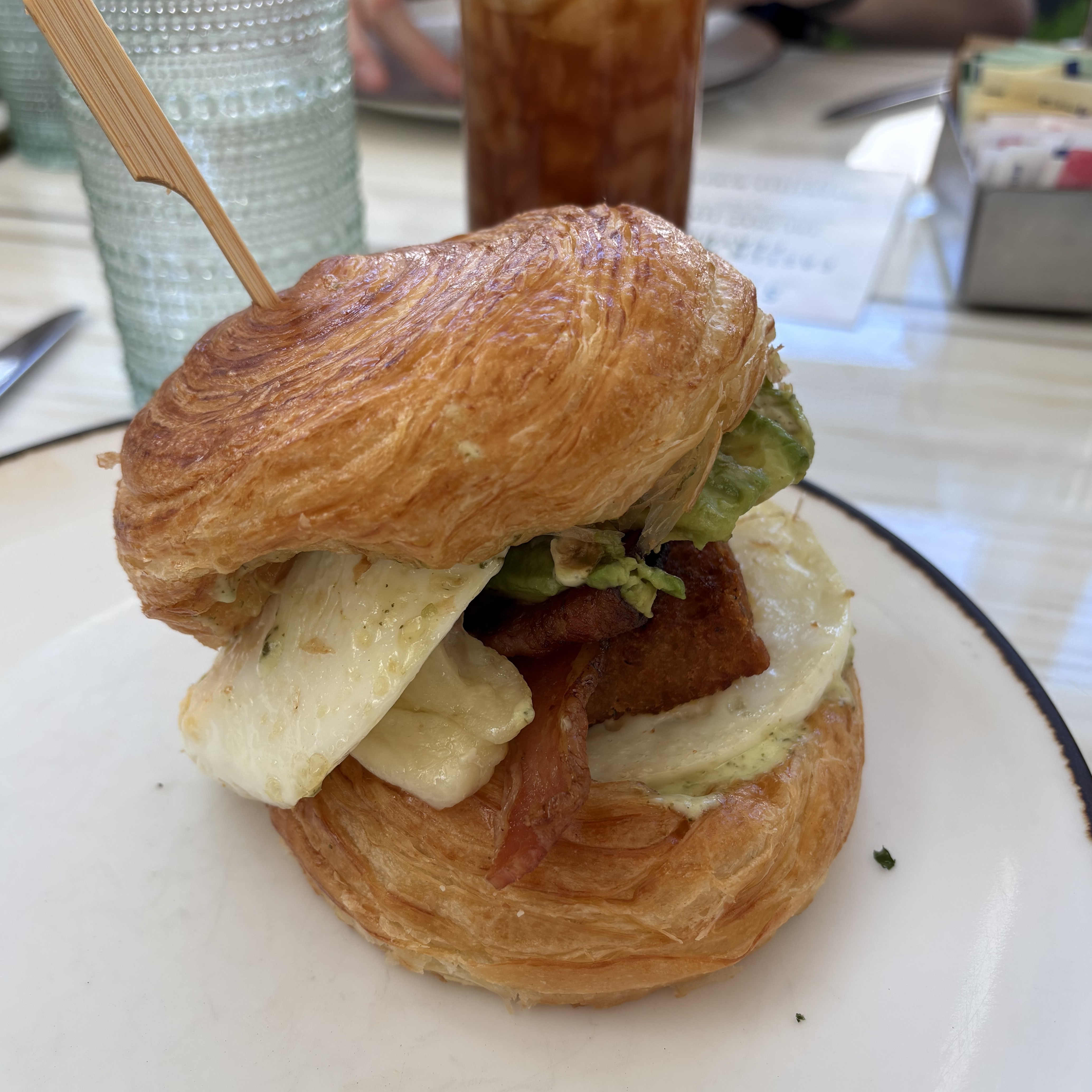 - ★☆☆☆ breakfast sandwich -- applewood smoked bacon, tomato, havarti cheese, avocado, organic eggs, pesto mayo, croissant muffin, hash browns. The ingredients are good, but I'm not a fan of the croissant muffin. I would also prefer the hash brown be on the side. Egg was a bit overcooked