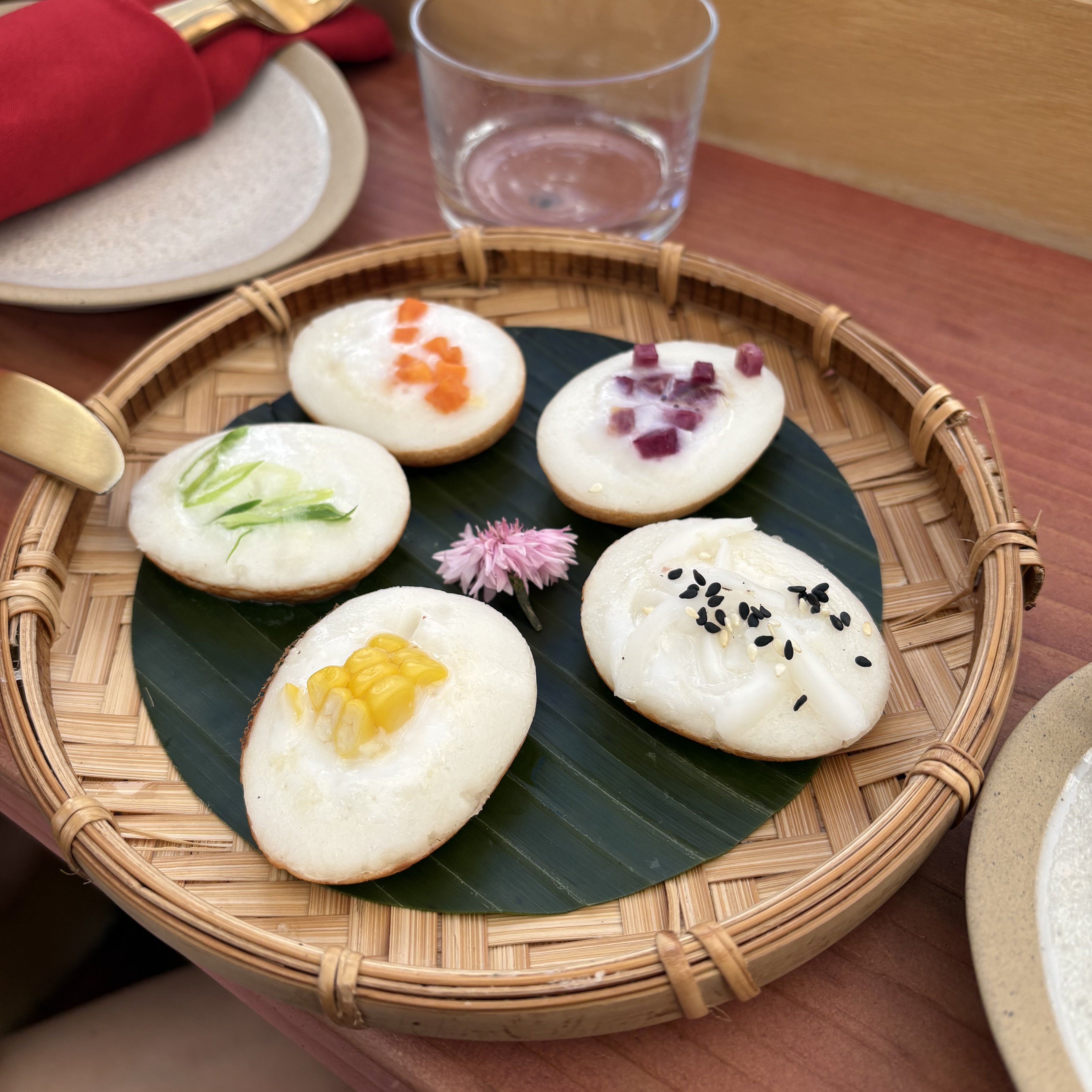 - ★★★☆ khanom krok -- bite sized coconut cakes with yam, sweet corn, and green onion. Quite delightful, very soft and just the right level of sweetness