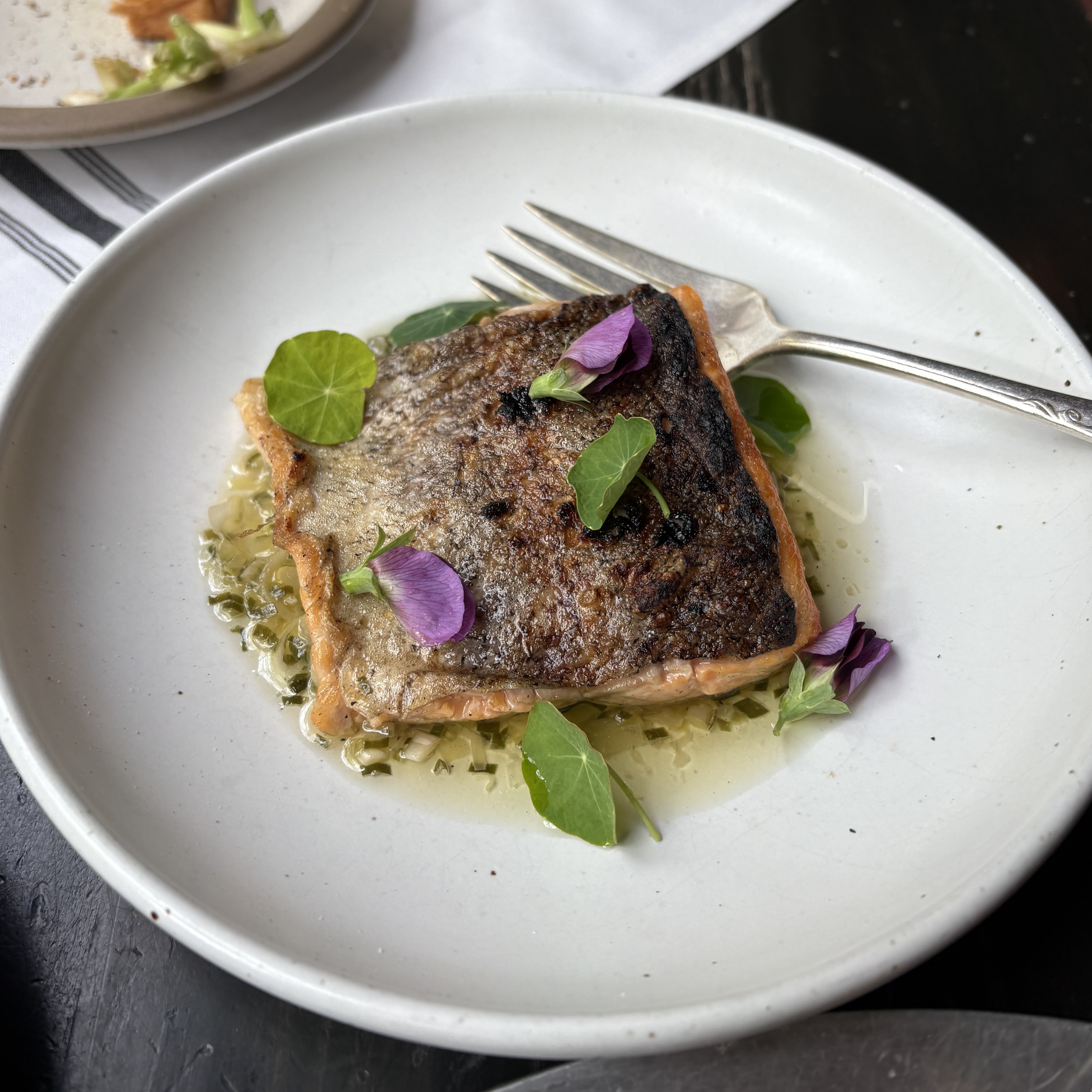 - ★☆☆☆ grilled mt. lassen trout -- The trout is cooked very well, but the flavor of the dish is a bit lackluster. It has a lot of butter and great flavors from the alliums but it needs some acidity to balance it out.