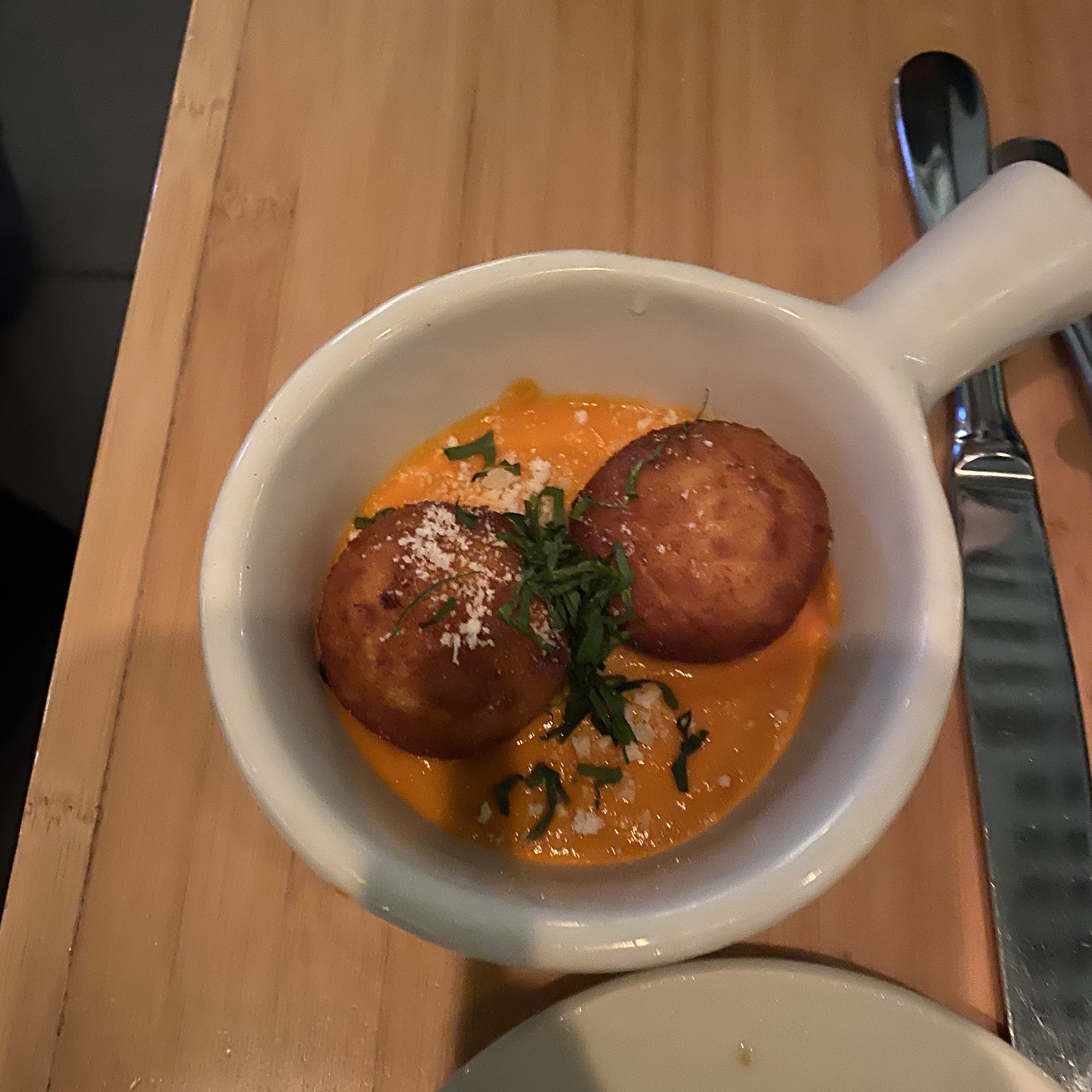 - ★★☆☆ Arancini, Fontina Stuffed -- Pretty similar to the polenta. The arancini itself was pretty well made; crispy exterior and creamy interior. My main gripe is with the sauce, which was too cheesy and not tart enough to provide a nice contrast to the arancini itself.
